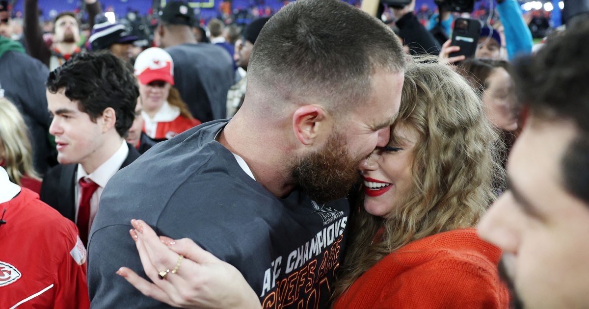 تايلور سويفت ضرب ملعب كرة القدم لأول مرة لتقبيل ترافيس كيلسي بعد فوز فريق Kansas City Chiefs في مباراة كرة القدم يوم الأحد 28 يناير، ليضمن مكانه في 2024 Super Bowl.