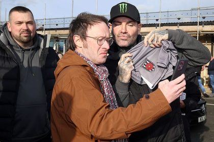 شين لينش وكيث دافي من Boyzone يلتقطان صورًا ذاتية مع المشجعين أثناء مشاهدة خسارة Chorley FC أمام Solihull Moors وسط مزاعم بأنهما يخططان لشراء نادي الدرجة السادسة