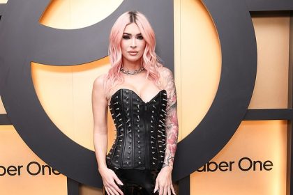 تستعرض ميغان فوكس منحنياتها في مشد عميق مغطى بالمسامير في حفل Super Bowl LVIII في لاس فيجاس
