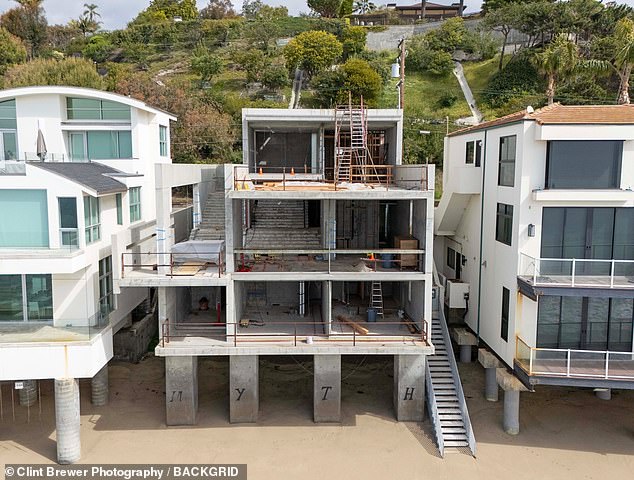 المنزل، الذي تبلغ مساحته أكثر من 4000 قدم مربع، يحتوي على أربع غرف نوم وخمسة حمامات مع إطلالات مثالية على المحيط الهادئ، ولكنه يفتقد النوافذ والجدران والسقف، ولا يحتوي على كهرباء.