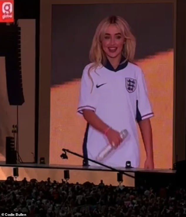 ارتدت سابرينا كاربنتر قميصًا إنجليزيًا لكرة القدم خلال أدائها في حفل كابيتال سمرتايم بول في لندن يوم الأحد، حيث واجهت الأسود الثلاثة ضد صربيا