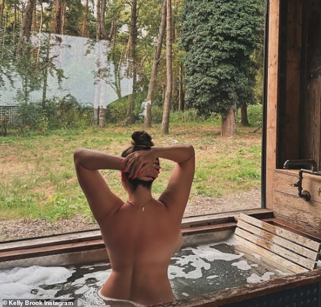 وبعد ذلك، تباهت كيلي بجسدها المذهل عندما خلعت ملابسها وانزلقت إلى حمام خلاب، وظهرت إلى الكاميرا وألقت نظرة خاطفة على جانب ثديها.