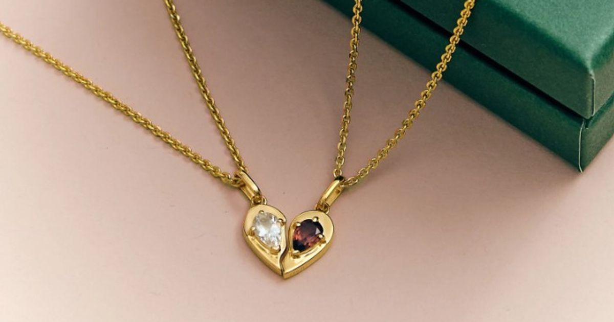 يتكون الثنائي من قلادتين، ويتميز بقلب منقسم – نصف مرصع بالتوباز الأبيض المزروع في المعمل والآخر بالعقيق الأحمر، وكلاهما متصلان لتكوين قلب كامل.