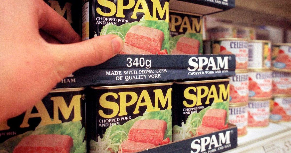 اكتسبت الرسائل الاقتحامية (SPAM)، التي تنتجها شركة تصنيع الأغذية الأمريكية Hormel Foods، شعبية بعد استخدامها خلال الحرب العالمية الثانية.