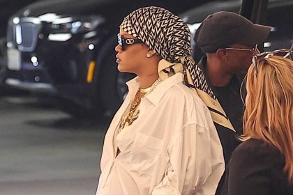 تغطي ريهانا الحامل عثرة طفلها المتنامي مع قميص أبيض أثناء نزهة في بيفرلي هيلز وهي تستعد للترحيب بطفلها الثالث