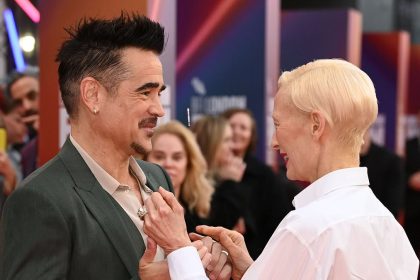 يتشارك كولين فاريل والنجمة تيلدا سوينتون عناقًا دافئًا أثناء سيرهما على السجادة الحمراء في العرض الأول لفيلم Ballad Of A Small Player
