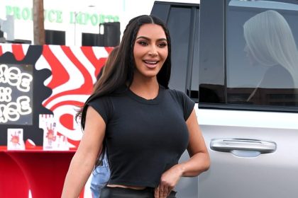 كيم كارداشيان ترتدي قميصًا أسود صغيرًا بينما تختلط هي وشقيقتها كلوي مع بي جي نوفاك في ChainFEST LA