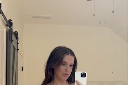 تظهر ميلي بوبي براون عضلات بطنها المنحوتة في بلوزة قصيرة وردية اللون وهي تصمم تنسيقًا مستوحى من الباليه من خط أزيائها بعد مشاركتها النظرة الأولى في حفل الزفاف الإيطالي لجيك بونجيوفي