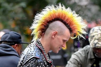 لا يمكن التعرف على الممثل البريطاني من خلال الموهوك الضخم متعدد الألوان أثناء تصوير المشاهد مع أوستن بتلر في مدينة نيويورك – ولكن هل يمكنك تخمين من هو؟