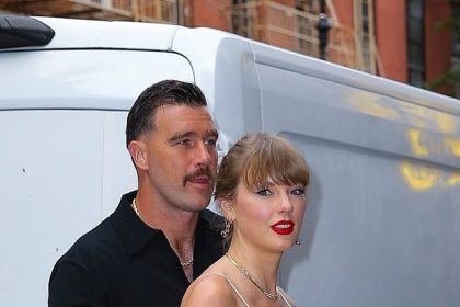 تايلور سويفت تتألق بفستان أبيض بينما تحضر هي والشاب الأنيق ترافيس كيلسي حفل زفاف عارضة الأزياء كارين إلسون في استوديوهات Electric Lady في نيويورك
