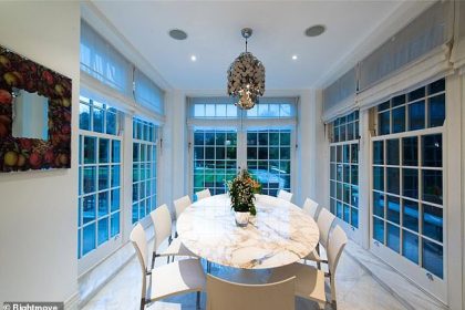 داخل قصر ريكي جيرفيس الجديد في هامبستيد والذي تبلغ قيمته 14.5 مليون جنيه إسترليني: الممثل الكوميدي ينتقل إلى عقار مترامي الأطراف يضم 9 غرف نوم وسبا وملعب تنس ولكنه يعترف بأنه ليس “منزله الدائم”