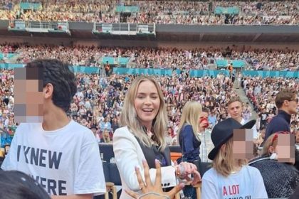 إيميلي بلانت تتبادل أساور الصداقة مع المعجبين عندما تنضم إلى زوجها جون كراسينسكي وأطفالهما في الليلة الأخيرة لتايلور سويفت في ويمبلي