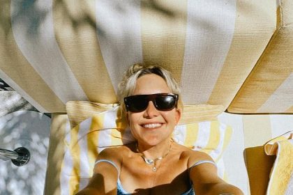 كيت هدسون تعرض عضلات بطنها في بيكيني أزرق ضيق وتظهر مؤخرتها بوقاحة أثناء مشاركتها في صور عطلة مثيرة في لاس فيجاس