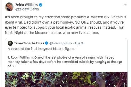 ابنة روبن ويليامز زيلدا ترد على منشور والدها الذي ادعى فيه أنه لديه “قرد أليف” – في الذكرى العاشرة لوفاته