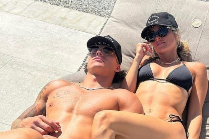 كريستين كافالاري، 37 عامًا، تكشف عن عضلات بطنها في بيكيني أسود مع صديقها مارك إستس، 24 عامًا، أثناء اختتام عطلتهما اليونانية