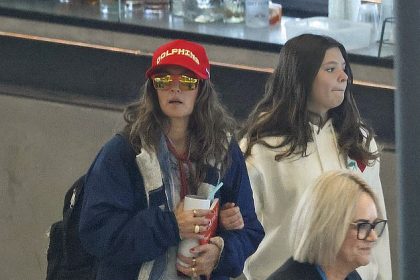 درو باريمور تغادر مطار بريسبان متخفية مع ابنتيها فرانكي وأوليف بعد جولة أسترالية سريعة