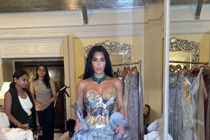 كيم كارداشيان تتألق بفستان كورسيه مثير مفتوح عند الفخذين وتنشر صورًا رائعة من حفل زفاف أمباني الذي بلغت تكلفته 600 مليون دولار في مومباي