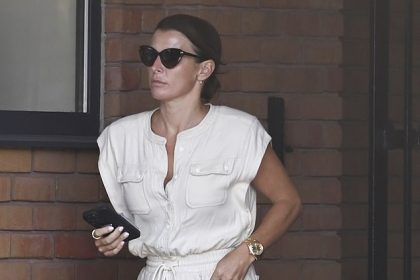 كولين روني تظهر بمظهر طويل للغاية مرتدية بذلة لعب كريمية وصندل سميك أثناء توجهها إلى صالون تجميل في شيشاير