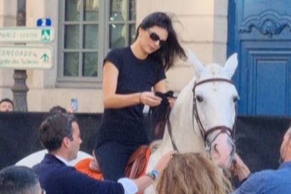 كيندال جينر وجيجي حديد يستعرضان مهاراتهما في ركوب الخيل أثناء التدريب على الحدث المستوحى من الألعاب الأولمبية لمجلة فوغ العالمية في باريس
