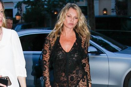 تبدو كيت موس في كل شبر من مكانتها كعارضة أزياء في فستان أسود شفاف من الدانتيل عند وصولها إلى حفلة Dior اللاحقة خلال أسبوع الموضة في باريس