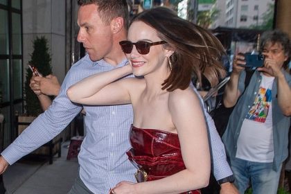 لفتت إيما ستون الأنظار بفستان أحمر مثير بدون حمالات أثناء توجهها إلى عرض Kinds Of Kindness في مدينة نيويورك