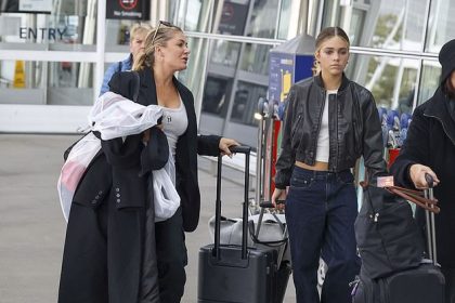 تبدو ناتالي باسينغثوايت أنيقة دون عناء وهي تتحدث مع ابنتها الصغيرة هاربر في مطار سيدني