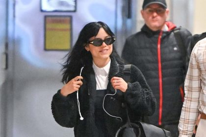 جينا أورتيجا تتألق بفستان قصير ذو ثنيات وسترة بومبر رقيقة عند هبوطها في مطار جون كينيدي في مدينة نيويورك
