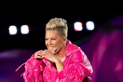 ترتدي بينك بدلة داخلية لامعة على خشبة المسرح أثناء قيامها بجولة كرنفال الصيف العالمية إلى ويلز