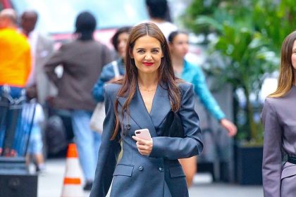 كاتي هولمز هي مثال للأناقة ببدلة بحرية أنيقة وحذاء بكعب أحمر أثناء تجولها في حي سوهو