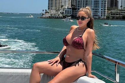 لارسا بيبن، 49 عامًا، ترتدي بيكينيًا من فيرساتشي بقيمة 900 دولار أثناء وجودها على متن يخت في ميامي… بعد لم شملها مع العاشق ماركوس جوردان، 33 عامًا