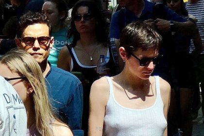 إيما كورين، 28 عامًا، تبدو غير رسمية في قميص أبيض بدون أكمام وبنطلون في رحلة تسوق مع صديقها رامي مالك، 43 عامًا، في هامبستيد