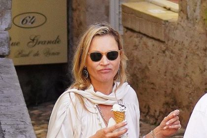 تبدو كيت موس أنيقة في فستان كريمي بينما تستمتع بنزهة وتناول بعض الآيس كريم في بروفانس مع صديقها الموسيقي القديم بوبي غيليسبي – وسط تكهنات حول حياتها العاطفية