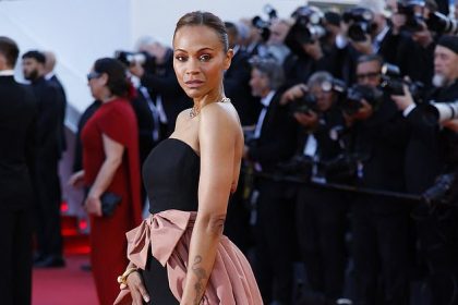 زوي سالدانا تتألق بفستان أسود ووردي على السجادة الحمراء في العرض الأول لفيلم إميليا بيريز في مهرجان كان السينمائي