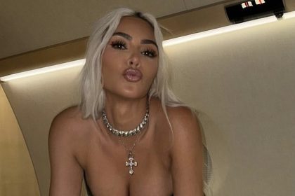 كيم كارداشيان تظهر في عرض مفلس للغاية في مشد جلدي أسود وهي تشكل عاصفة على سرير طائرتها الخاصة التي تبلغ قيمتها 95 مليون دولار