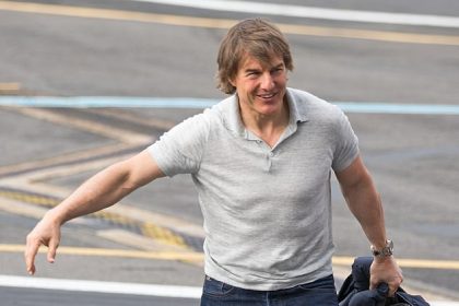 توم كروز، 61 عامًا، يغطي تواضعه بقميص بولو رمادي غير رسمي عند وصوله إلى مطار باترسي في لندن بعد أن أظهر لياقته البدنية الممزقة في تلك الصورة بدون قميص