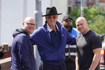 يلتقي بيرس بروسنان مع عائلة مدرب الملاكمة بريندان إنجل أثناء تحوله إلى دور تصوير فيلم السيرة الذاتية Giant في ليدز