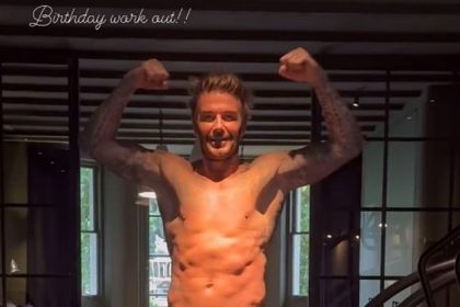 تعرض فيكتوريا بيكهام اللياقة البدنية المذهلة لزوجها ديفيد وهو يستعرض عضلاته مازحا خلال تمرين عيد ميلاده التاسع والأربعين
