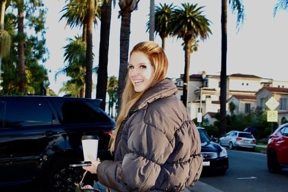 تظهر لانا ديل راي بمظهر مرح مرتدية سروالًا ضيقًا ومعطفًا أسود مبطنًا عند وصولها إلى الكنيسة الكبرى المعتمدة من المشاهير.