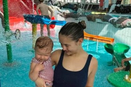 تظهر مولي ماي هيغ شخصيتها في ملابس السباحة السوداء بينما تعشق ابنتها بامبي خلال عطلة نهاية الأسبوع العائلية الفاخرة.