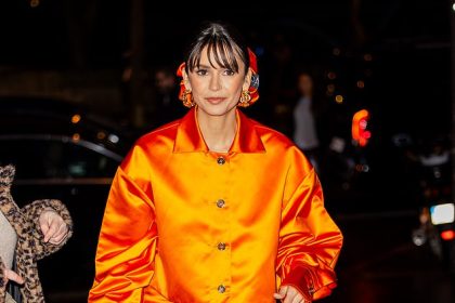 تبدو نينا دوبريف مثيرة وهي ترتدي زيًا برتقاليًا نابضًا بالحياة أثناء زيارتها لمتجر باتو خلال أسبوع الموضة في باريس