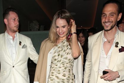 ليلي جيمس ترتدي فستانًا قصيرًا منقطًا بينما تحتفل هي وصديقتها جيما تشان بعيد ميلادها الخامس والثلاثين في مايفير