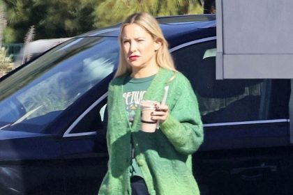 كيت هدسون ترتدي سترة خضراء مريحة وتستمتع بالعصير في موقع تصوير فيلمها الجديد Shell في لوس أنجلوس