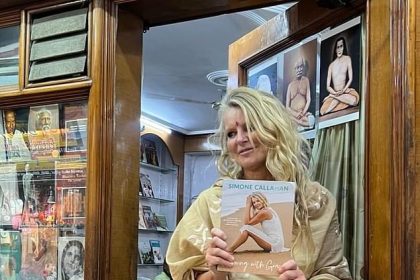زوجة شين وارن السابقة، سيمون كالاهان، ترتدي الجلباب الفضفاض والبندي في حفل إطلاق الكتاب في ملبورن