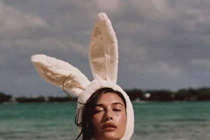 هايلي بيبر هي أرنبة كبيرة الحجم ترتدي ملابس سباحة سوداء بينما تتألق باريس هيلتون بملابس باربي الوردية مع ابنها وهم يقودون النجوم للاحتفال بعيد الفصح