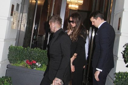 فيكتوريا بيكهام تظهر بشكل أنيق باللون الأسود وهي تمسك بيد زوجها ديفيد بعد موعد عشاء في مطعم إيطالي فاخر في مايفير