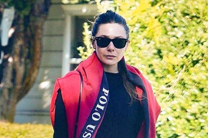 إليزابيث أولسن تبدو رائعة وغير رسمية مرتدية قميص بولو أحمر وسروال رياضي أسود أثناء زيارتها لصديق في لوس أنجلوس