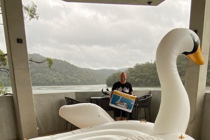 المعجبون يرصدون تفاصيل جامحة في صورة لاري إمدور مع بجعة عملاقة قابلة للنفخ… وهو ليس الطائر