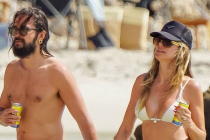 هايدي كلوم مبهرة وهي تزيل البيكيني أثناء نزهة على الشاطئ مع زوجها توم كوليتز
