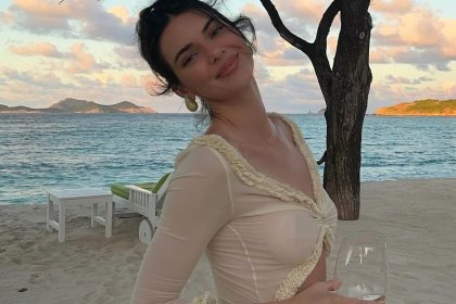 كيندال جينر ترتدي حمالة صدر بفستان شفاف للغاية مع هايلي بيبر على الشاطئ
