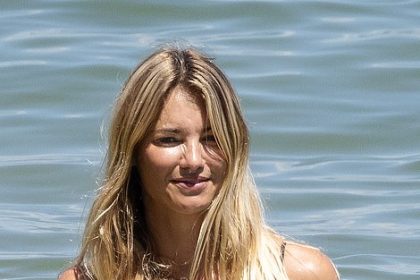 عارضة أزياء فيكتوريا سيكريت إليز تايلور تستعرض قوامها المذهل بالبكيني الأسود أثناء قضاء العطلة في نوسا مع رجل غامض